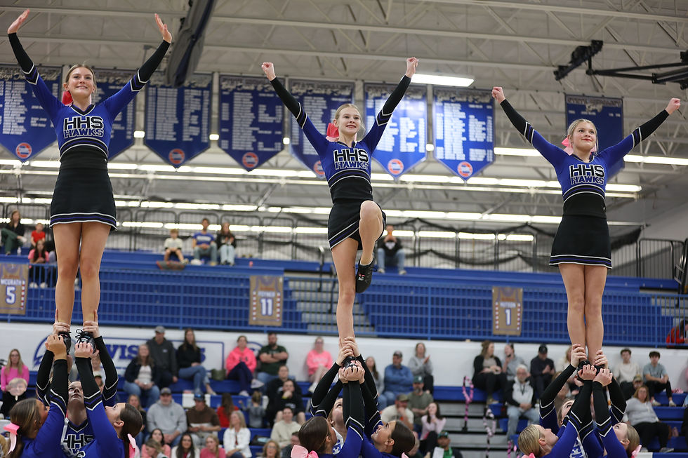 In front of a packed gym and a sea of pink, the Hawks honored their seniors the right way — with heart, hustle, and a 68-58 victory over DeSoto.